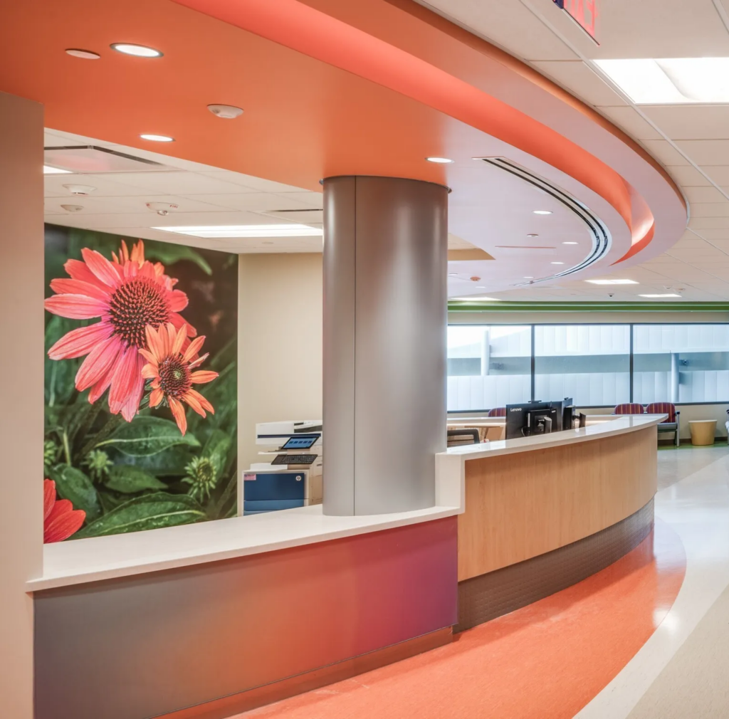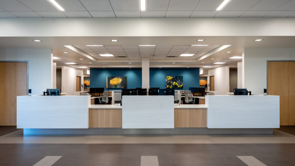 Three custom nurse station installations across two floors of a Phoenix Children’s Hospital expansion. Castaldi produced durable high-pressure laminate casework with integrated wire management, custom corner workstations, and patient-facing transaction counters built for high-traffic 24/7 use. Delivered on a fast-track schedule to meet the hospital’s opening date.